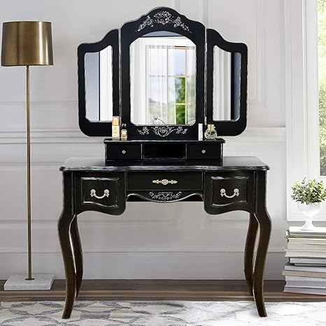 Details About Elegant Bedroom Makeup Vanity Table Flip Up Mirror Drawers Queen Anne Leg Black