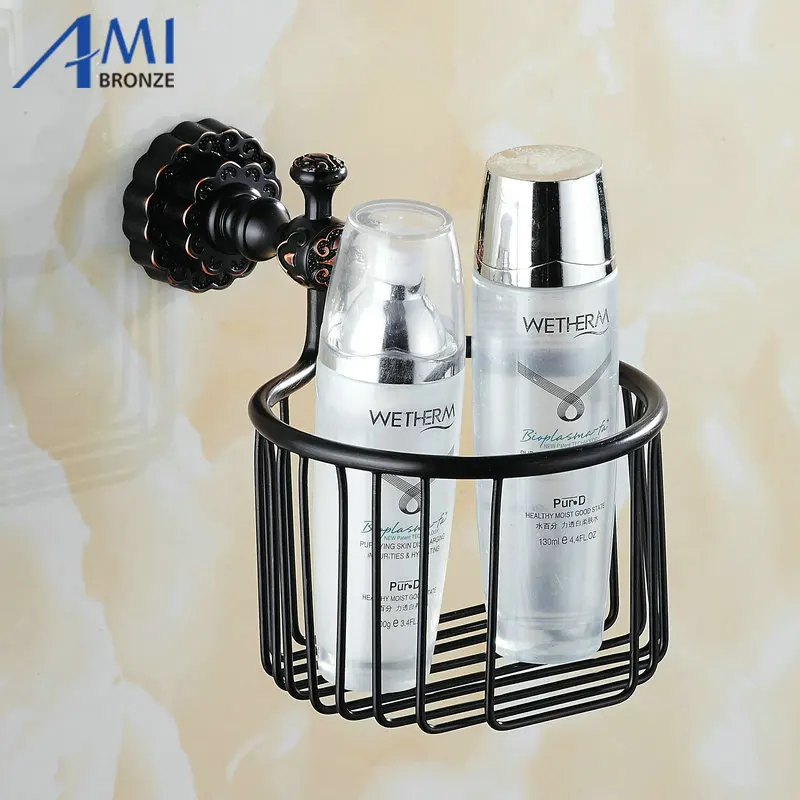 Us 46 06 52 Off Twin Flowers Series Carving Black Brass Bathroom Storage Basket Bathroom Accessories Bathroom Shelf Toilet Vanity Shelves 40cm In