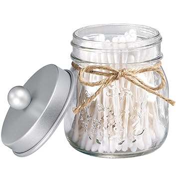 Qtip Dispenser Bathroom Vanity Organizer Farmhouse Decor Bathroom Storage Accessories 8oz Mason Jars With Easy Handle Lids For Q Tips Cotton