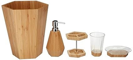 Amazonbasics 5 Piece Bamboo Bathroom Vanity Accessories Set Geometric