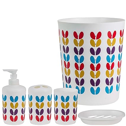 Decorrack Set Of 5 Designer Bathroom Vanity Accessories Bpa Free Plastic Bath Ensemble Includes Trash Can Hand Soap Lotion Dispenser Toothbrush