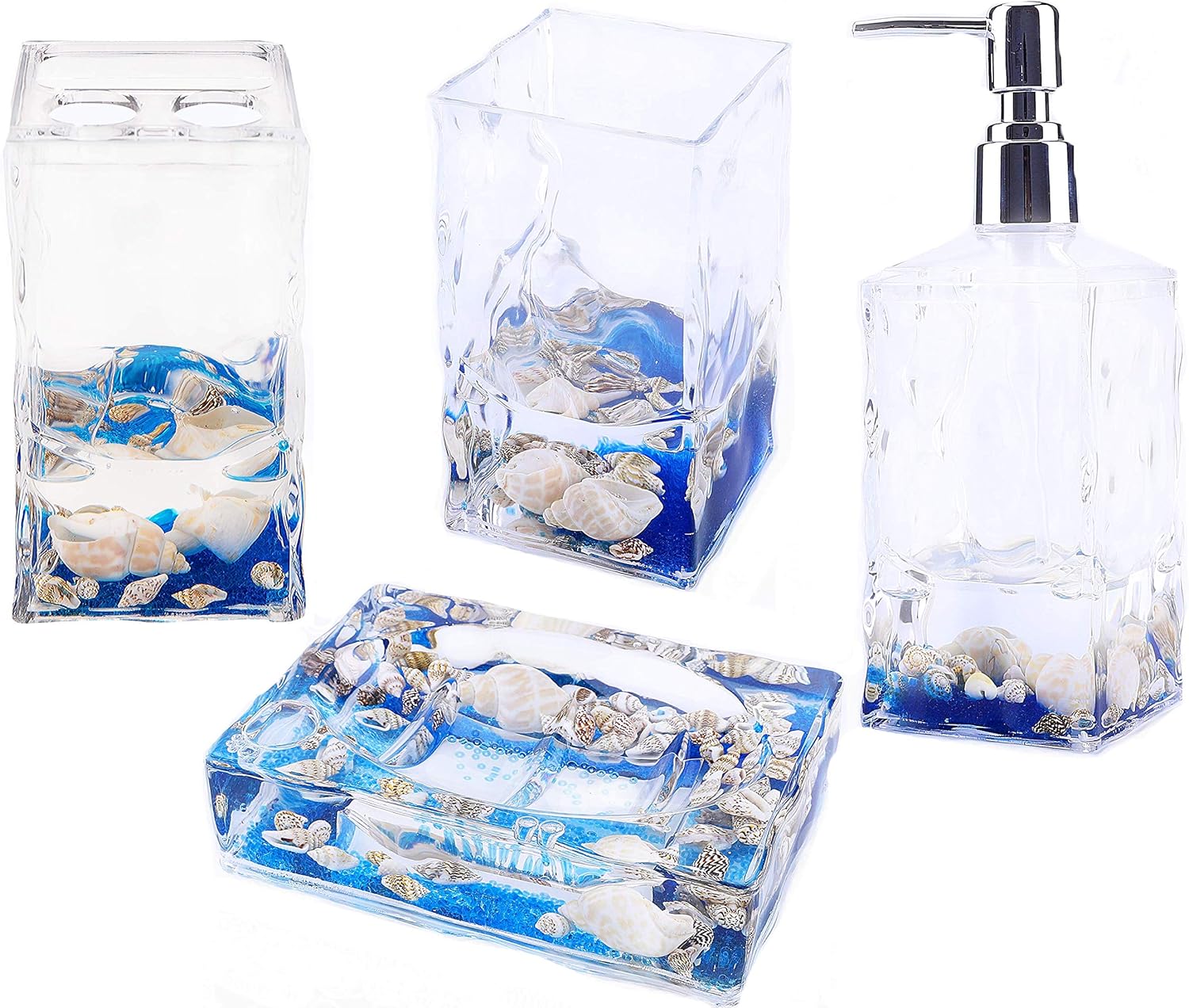 Locco Decor 4 Piece Acrylic Liquid 3d Floating Motion Bathroom Vanity Accessory Set Shell